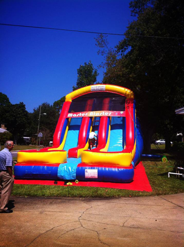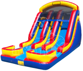 Please allow 30′ Long 17′ Wide 20' Tall for the Dual Lane Master Blaster Water Slide! Race your friends and family down the very fast Master Blaster! This slide is awesome for kids and adults.